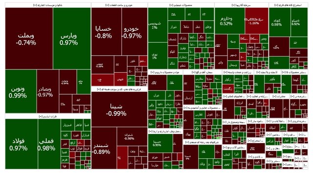 فملی، فولاد و فارس به ترتیب از نمادهای تاثیرگذار بر شاخص بورس بودند که همگی سبز شدند. از نمادهای پرتراکنش نیز می‌توان به وبملت، شپنا و فولاد اشاره کرد.