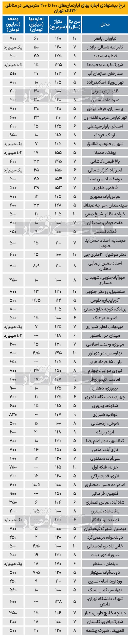 اجاره آپارتمان های بالای۱۰۰متر در تهران چند؟