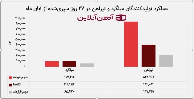 عملکرد تولیدکنندگان میلگرد و تیرآهن در ۲۷ روز سپری شده از آبان ۱۴۰۳