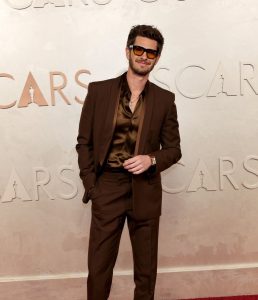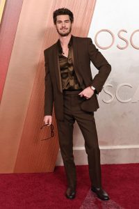 اندرو گارفیلد بازیگر مشهور هالیوود با کت و شلواری قهوهای رنگ در مراسم اسکار حضور داشت.