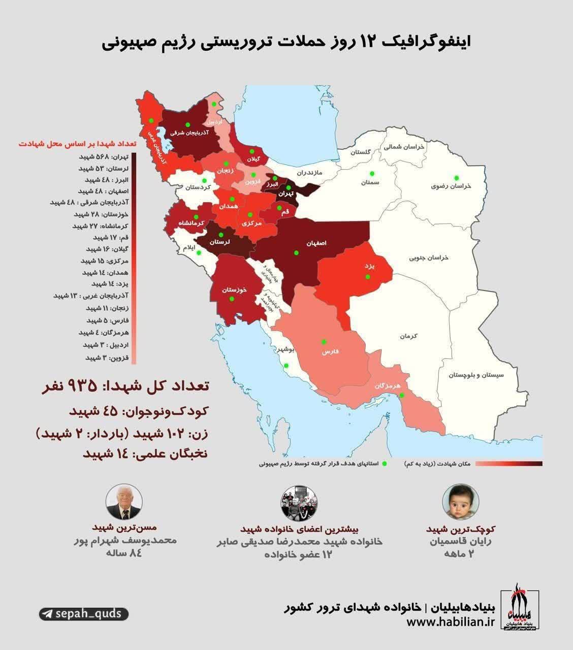 اینفوگرافیک آماری شهدای حمله اسرائیل هر استان
