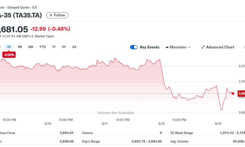 شاخص ۳۵ واحدی بورس تلآویو اسرائیل در آغاز معاملات ۱۵ ژوئن ۱.۵ درصد کاهش یافت و روند نزولی قبلی را تشدید کرد.