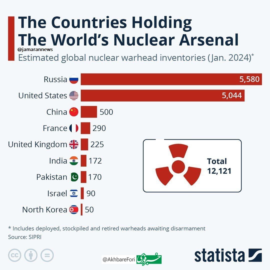 بمب های اتم جهان در اختیار این کشورها است