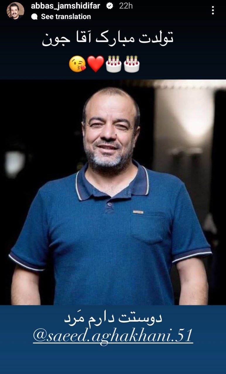 عباس جمشیدی فر در استوری اینستاگرامش پیام تبریک تولد، برای سعید آقاخانی منتشر کرد.