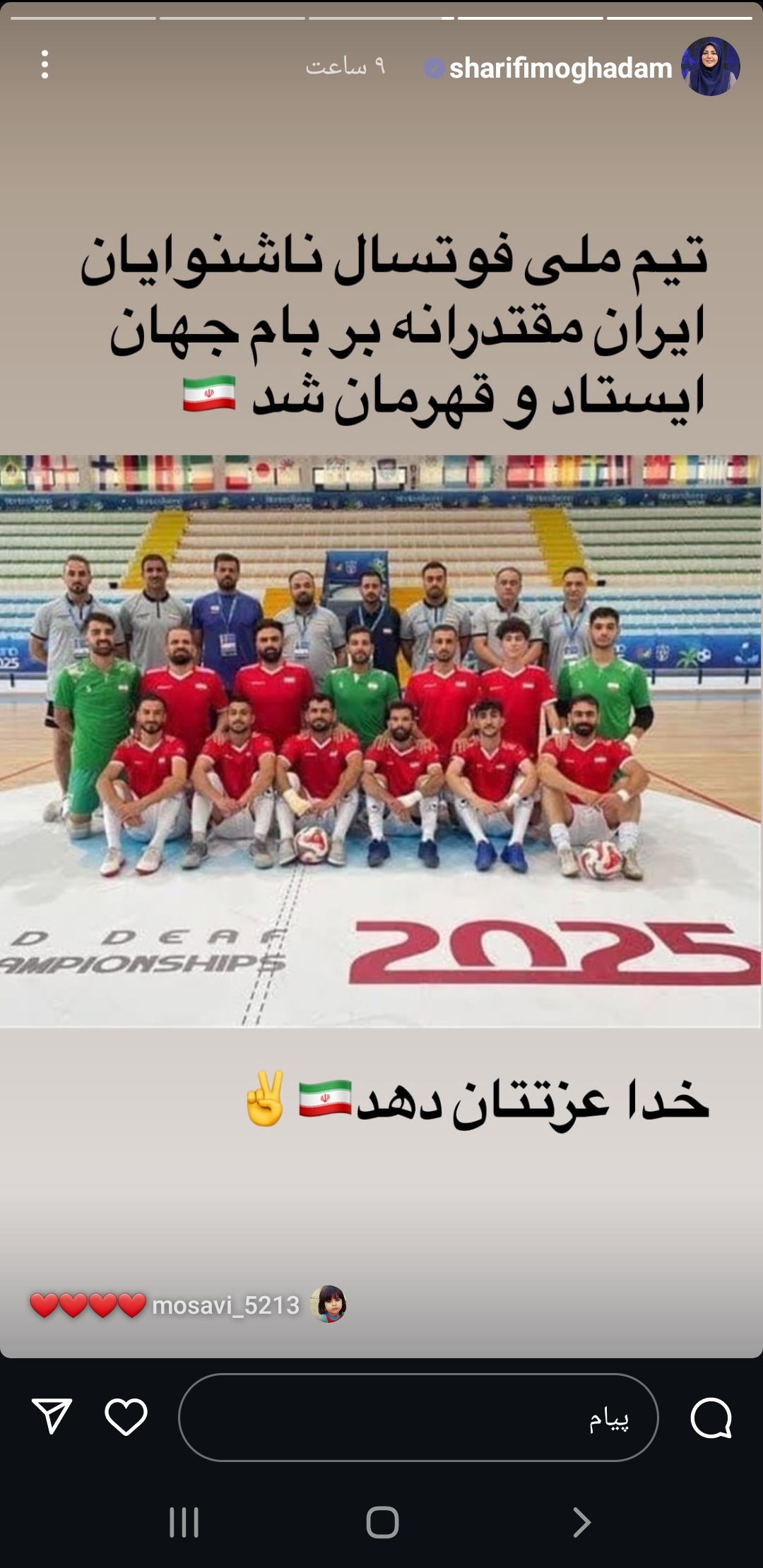 المیرا شریفیمقدم مجری مشهور با انتشار یک استوری از تیم والیبال ناشنوایان تشکر کرد.
