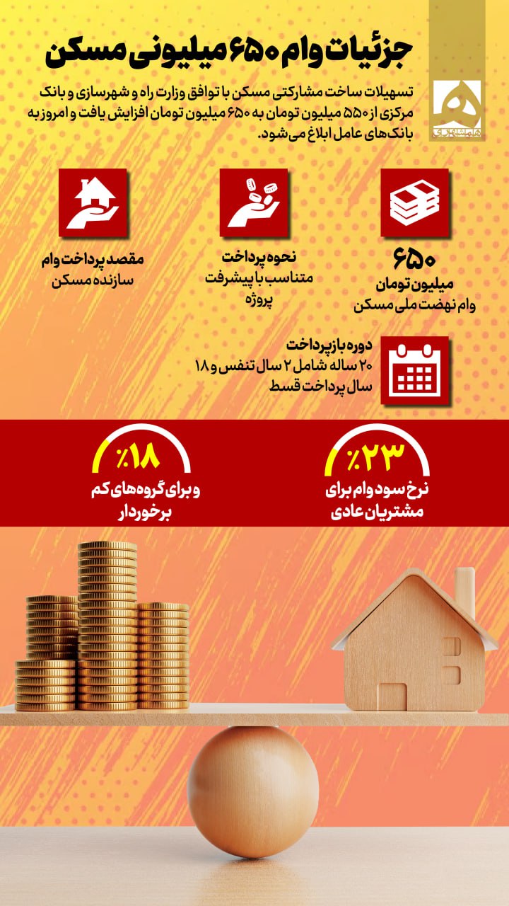 جزئیات وام ۶۵۰ میلیونی مسکن+اینفوگرافی