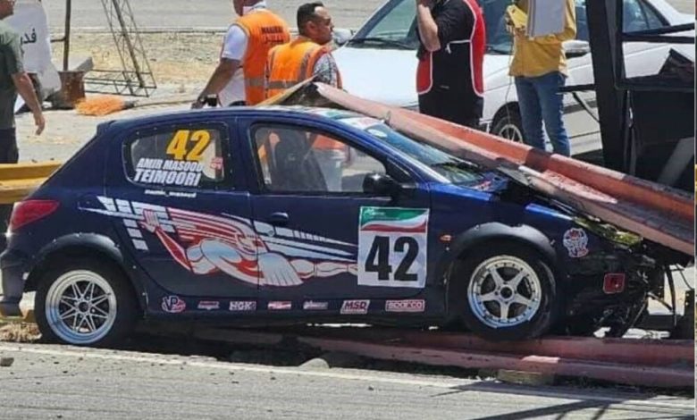 خروج یک ماشین از پیست اتومبیلرانی آزادی باعث ایجاد سانحه و مصدومیت عامل اجرایی – عکاس ورزشی شد.