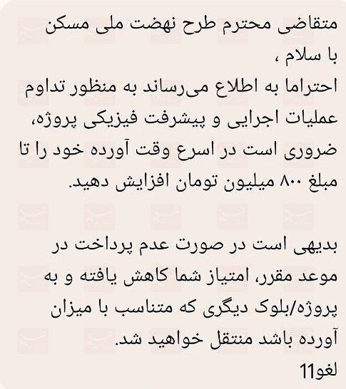 شرکت عمران شهر جدید پرند با یک پیامک عجیب متقاضیان مسکن را تهدید کرد +عکس