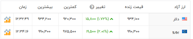 در بازار ارز، دلار با رشد هزار و ۵۸۰ تومانی قیمت، ۹۳ هزار و ۴۱۰ تومان در صرافی ها معامله شد.