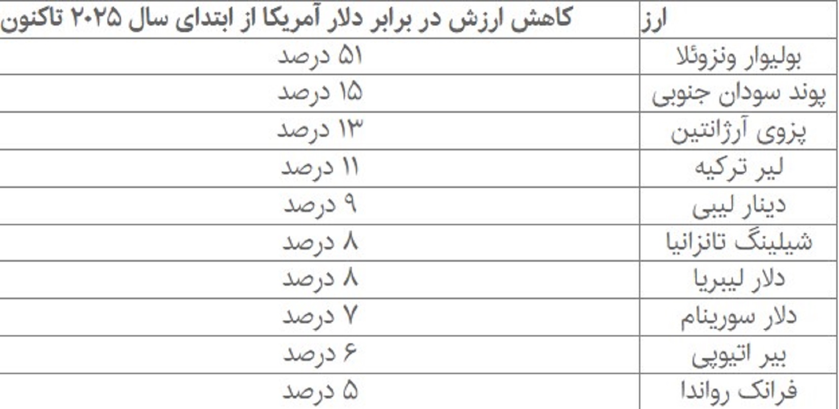 فهرست ارزهایی که در سال ۲۰۲۵ زمین خوردند