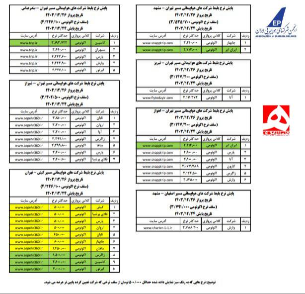 با نزدیک شدن به روزهای پایانی سال قیمت بلیت های اکونومیک تا همان بلیت های اقتصادی اعلام شد.