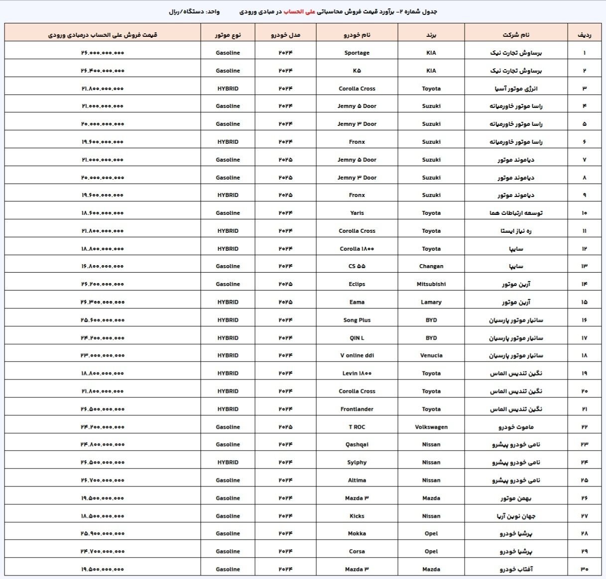 قیمت جدید خودروهای وارداتی اعلام شد+ جدول