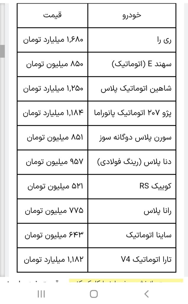 اولین کراساوور ملی، ریرا، بیشترین اختلاف قیمت بین کارخانه و بازار را دارد. قیمت کارخانه این خودرو در فروردین امسال یک میلیارد و ۱۴۲ میلیون تومان اعلام شده.در حالی که در بازار آزاد با نرخ یک میلیارد و ۶۸۰ میلیون تومان معامله میشود.این اختلاف ۵۳۷ میلیون تومانی ناشی از عدم اعلام قیمت جدید توسط عرضهکننده است.