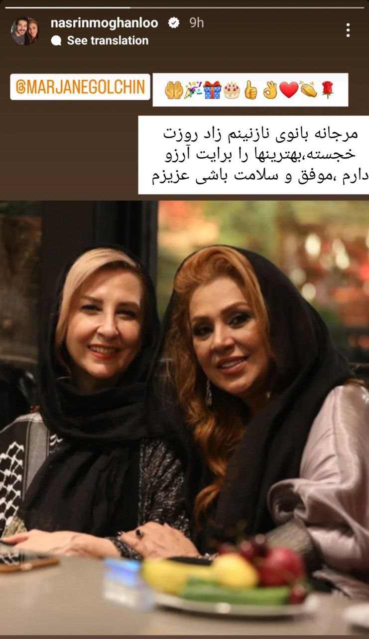 نسرین مقانلو در پیامی احساسی زادروز مرجانه گلچین را در استوری اینستاگرامش تبریک گفت.