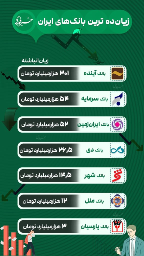 بانک آینده به تنهایی با ۳۰۱ هزار میلیارد تومان زیان انباشته، بیشترین سهم را در این بحران دارد.