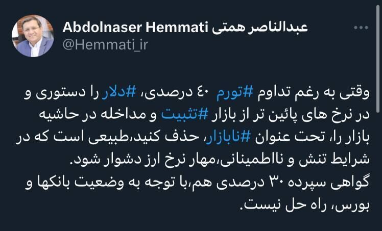 عبدالناصر همتی به افزایش قیمت دلار واکنش نشان داد.