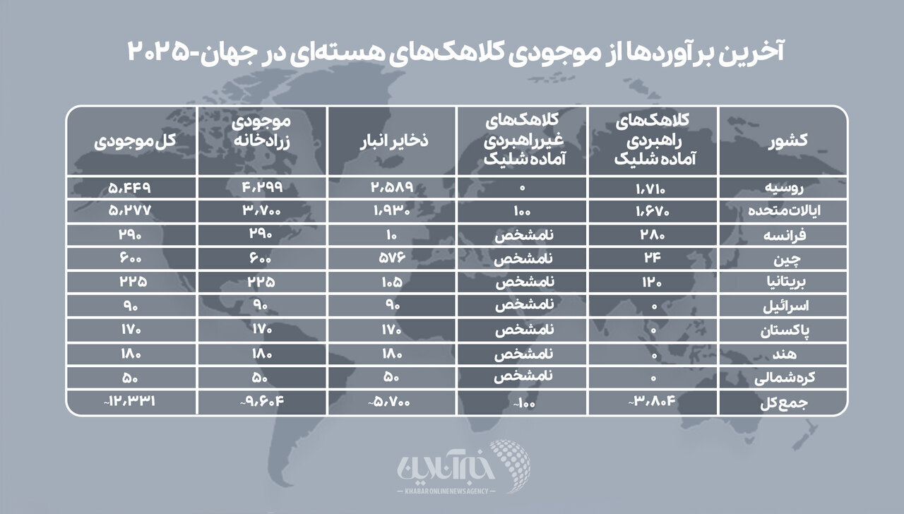 تا آغاز سال ۲۰۲۵، تنها ۹ کشور در مجموع حدود ۱۲٬۳۳۱ کلاهک هستهای در اختیار داشتند.