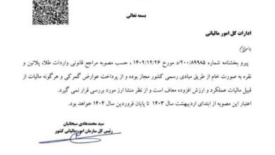 واردات طلا تا فروردین ۱۴۰۴ از مالیات معاف است